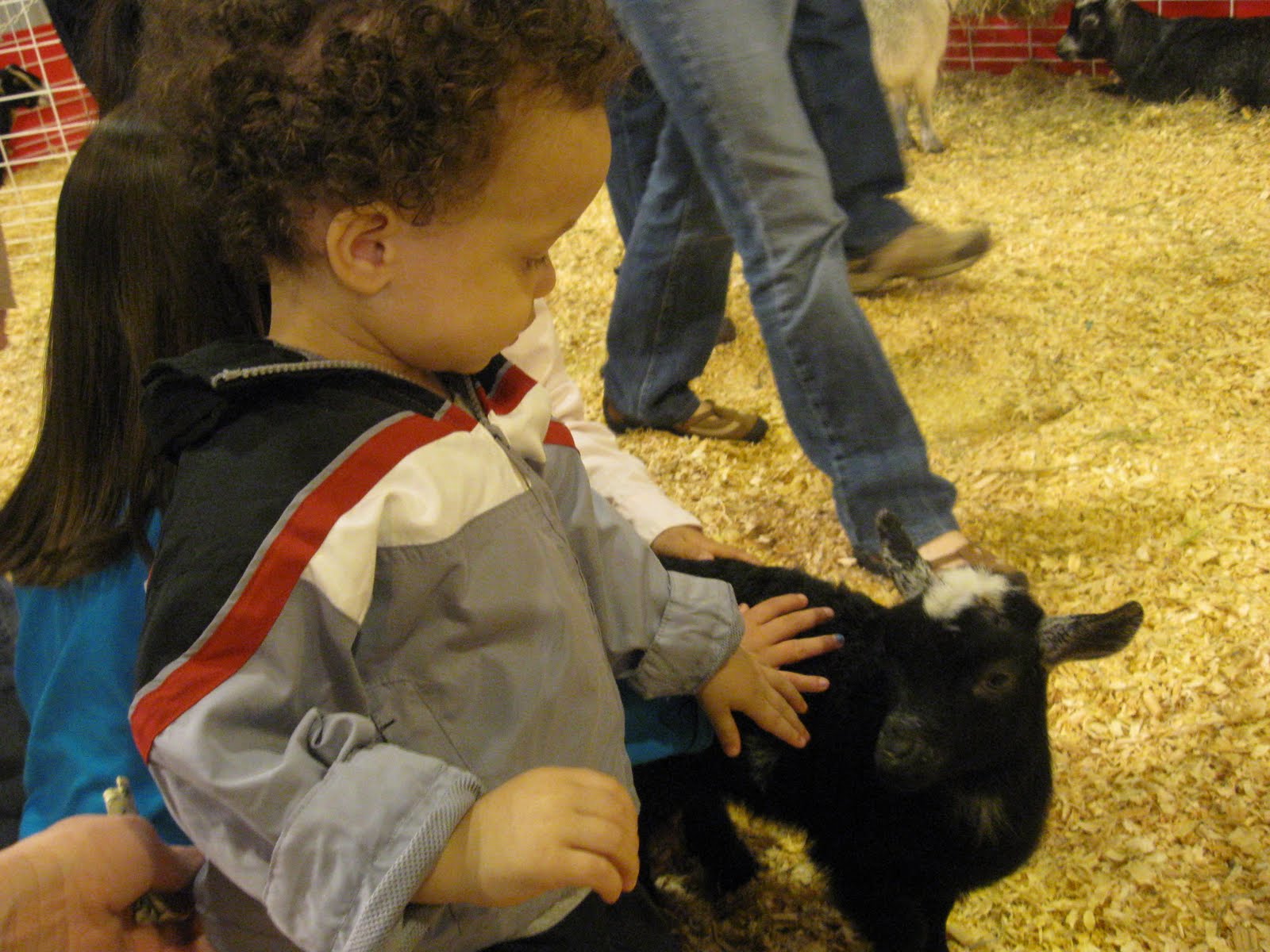 Wednesday... I took Julian to the rodeo... everyone in Houston calls it the rodeo but it was actually just like going to a civic center with lots of booths and lots of food stands with a carvival outside and a huge stock show in the back of the building.. we did not attend the rodeo.. but julian did enjoy walking up and down the isles at the stock show looking at the steers and the pigs. Julian wasn't a huge fan of the petting zoo (neither was I)... there were a zillion people in there and a zillion goats all pushing people for food.. we did manage to find a couple babies in a corner by themselves and Julian actually got out of my arms to pet them and enjoyed it. There were pony rides but the line was a mile long and being someone who was around horses daily growning up, it is hard to imagine i would have to wait in a mile long line to let my kid ride a dang pony... we are just going to really have to make the best of our trips home with all the animals and horse rides... overall Julian and I were only there for about 2 hours and we left... another trip to the park with dad later when we got home
